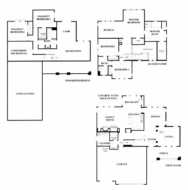 This fabulous two story home offers ease and convenience. The front porch adds a welcoming touch and as you enter the two story foyer you are greeted by the open living and dining rooms. The large kitchen with optional island has a large breakfast nook, wall pantry, and flows into the family room which features an optional entertainment center and a fireplace. There's even the option of a covered patio deck off the family room. Upstairs the master retreat is truly exceptional with a three way fireplace option and a full master bath, and two closets. The additional 2 bedrooms share a Jack and Jill bath. Need more room? Finish the basement with a game and recreation area, up to 2 additional bedrooms, and another full bath.