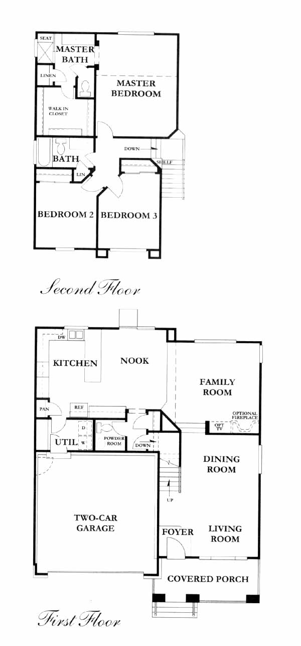 The covered front porch on this two story home is inviting and useful. As you enter the open living and dining rooms greet you and a plant shelf, with optional fireplace, divides the family room. The kitchen is large with an adjacent counter seating area and a good sized nook. Upstairs the master suite, with the option of a retreat, is separate from the other two bedrooms.