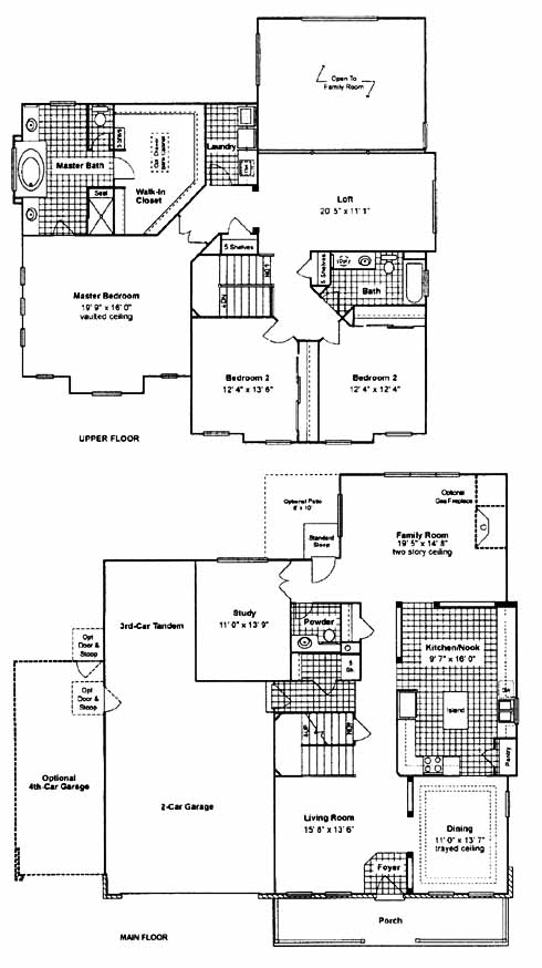 The tiled foyer flanked by the living and dining room takes you past the tiled kitchen with island and breakfast nook and into the family room with optional gas fireplace. From the family room you can access the powder room and study. Upstairs you'll find the 2nd, and 3rd bedrooms with hall bath, loft area and the master bedroom with walk-in closet and tile master bath with dual vanities.