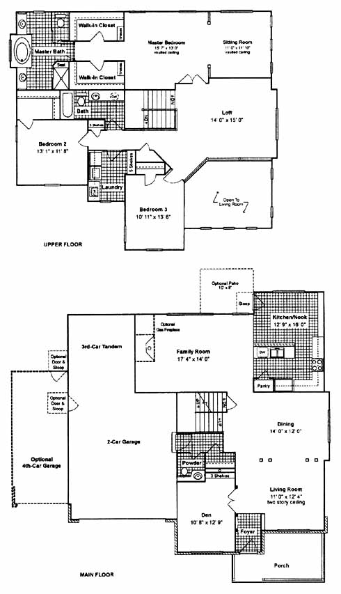 The tiled foyer leads you past the den and into the living and dining room area. Next is the family room with optional gas fireplace. Open to the family room is the tiled kitchen with pantry and breakfast nook. Upstairs you'll find the 2nd, and 3rd bedrooms with hall bath, loft area and the massive master bedroom with his and her walk-in closets, sitting room and tiled master bath with dual vanities.