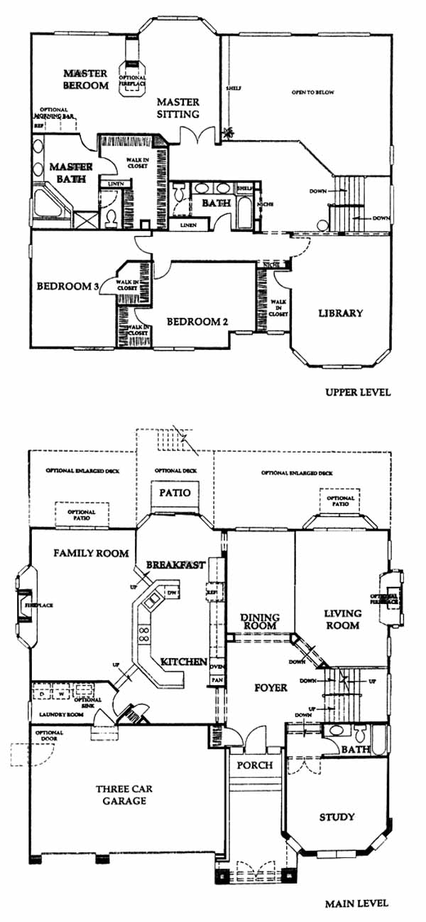 Located in a master-planned golf course community with numerous lakes and native habitats; this sensational home features a step-down, two story formal living room with an optional fireplace, a main floor study with a bay window and full bath on the main floor. The extra large kitchen and breakfast nook with bay window are raised from the family room with its magnificent fireplace. On the upper level you'll be awed by the master suite with its optional see-through fireplace and private sitting area with its own bay window. The upstairs library can be converted into an additional bedroom as well. A wonderfully diverse home.