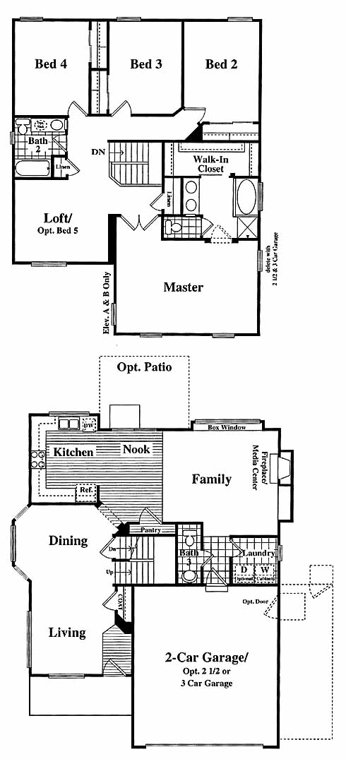 The spacious living and dining room are greets you as you enter the home. Next is the kitchen with pantry and breakfast nook. The kitchen opens to the family room with fireplace and media center. On the second floor you have the 2nd, 3rd and 4th bedrooms, hall bath, loft area and the master bedroom and bath with dual vanities.