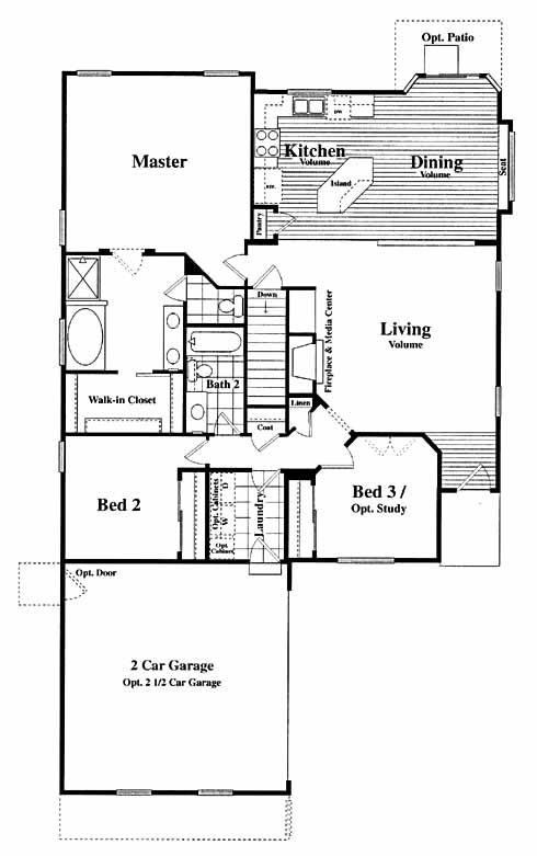 The large living room greets you as you enter the home. To your left you can access the 2nd and 3rd bedrooms with hall bath, Also accessible from the living room is the kitchen with island and dining area and the massive master bedroom and bath with dual vanities and a walk-in closet.