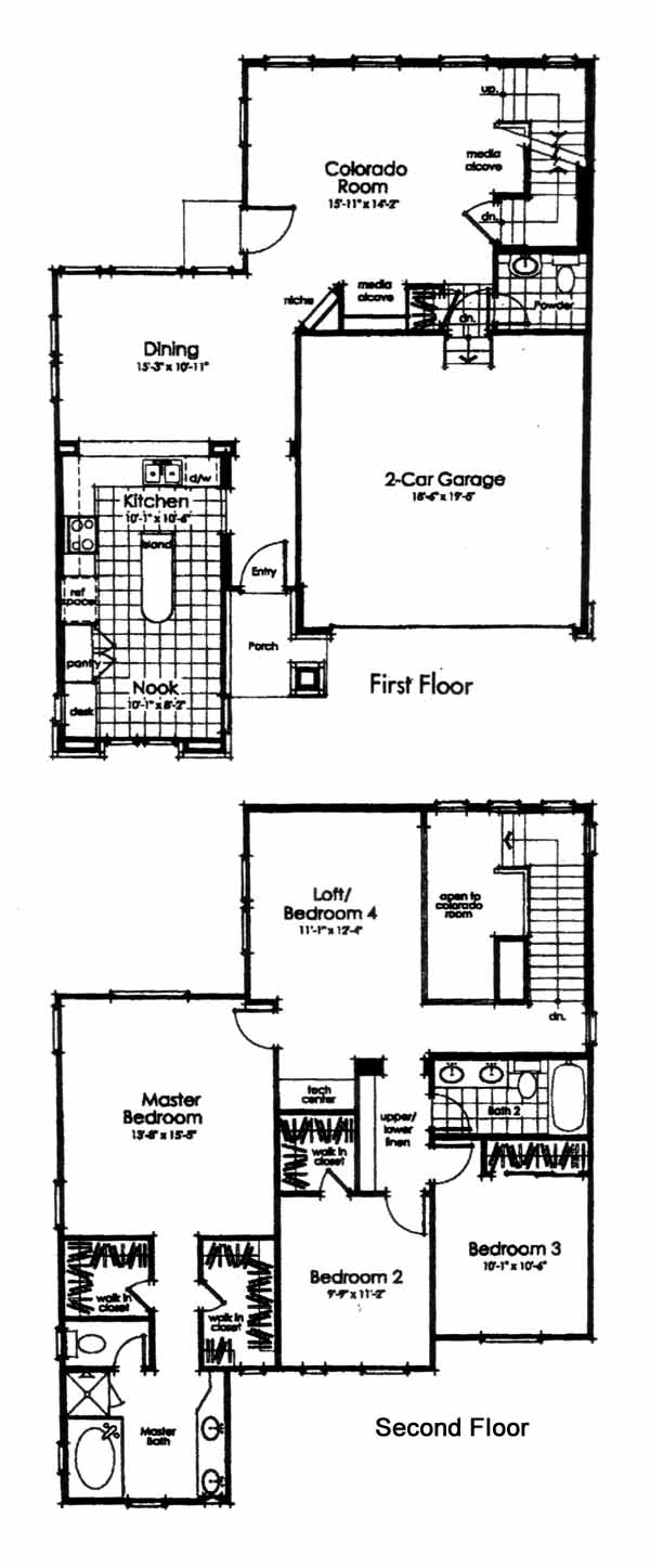 This unique 3 bedroom, 2 story home has a kitchen with a large island, a huge pantry, breakfast bar, and nook. A formal dining room is off the kitchen and the Colorado Room is a great family gathering place complete with a media alcove and an optional fireplace. The bedrooms are on the second floor with the master suite containing 2 walk-in closets. The loft makes a cozy getaway spot or can be customized as a 4th bedroom.