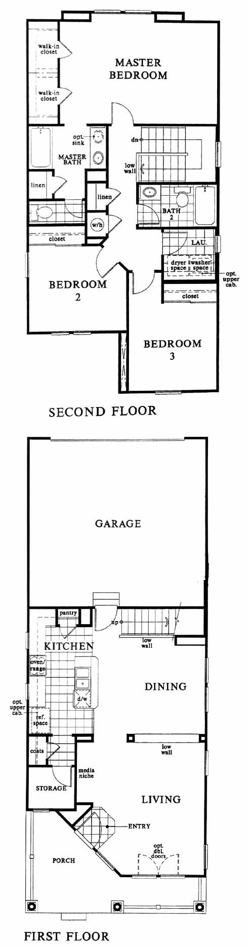 The large living room with media niche greets you as you enter the home. Next is the spacious dining room which leads to the tiled kitchen with pantry. On the second floor you have the 2nd and 3rd bedrooms, hall bath and impressive master bedroom with his and her walk-in closets and master bath with optional dual vanities.