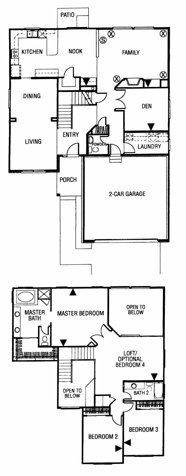 A two story entry greets you as you enter this wonderful home. On the main floor a there are formal living and dining rooms. Spacious kitchen with a nook and patio. Large soaring two-story family room with a stylish gas fireplace. French doors lead you to a den. On the second floor, there is a large Master Suite with a huge master bath and walk-in closet. The other two bedrooms are in the front of the home and share a bathroom. Loft or optional fourth bedroom.