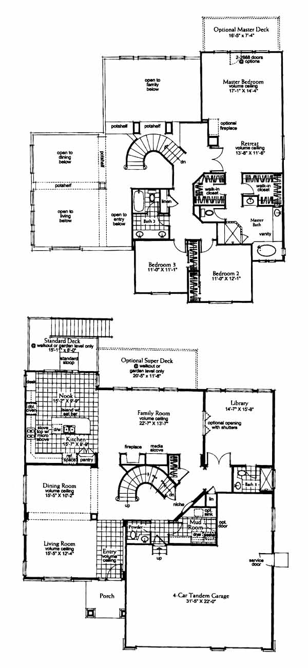 Three bedroom home with a large master and retreat with an optional fireplace and deck. Twin walk-in closets in the luxurious master bath with fireplace option. Optional fourth, fifth, and sixth bedrooms, or a library, family room, hobby room, formal dining and living room. Gourmet kitchen with a nook and walk-out deck.