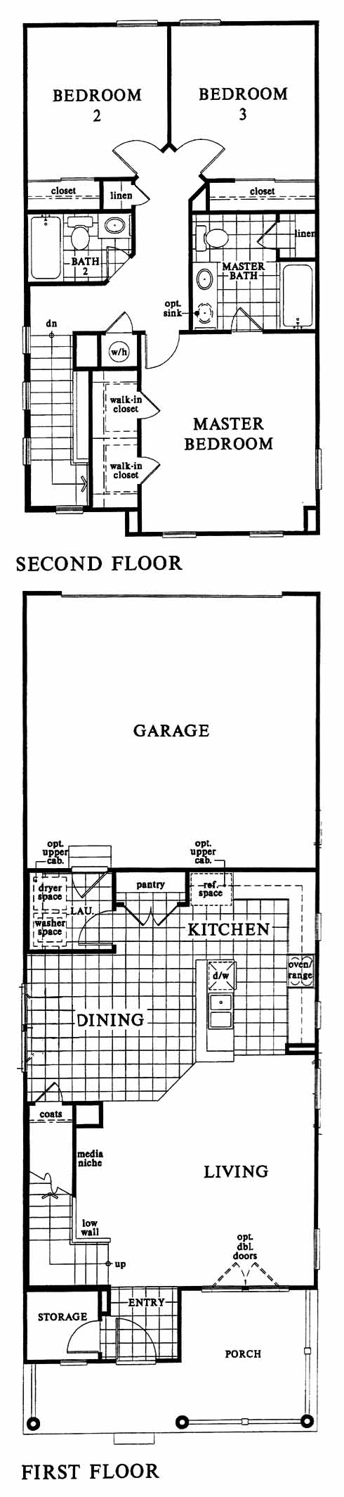 The tiled entry leads you directly into the spacious living room. Next you'll come to the tiled kitchen with pantry, wrap around counter and dining area. Upstairs you have the 2nd and 3rd bedrooms, hall bath and the massive master bedroom with his and her walk-in closets and master bath with optional dual vanities.