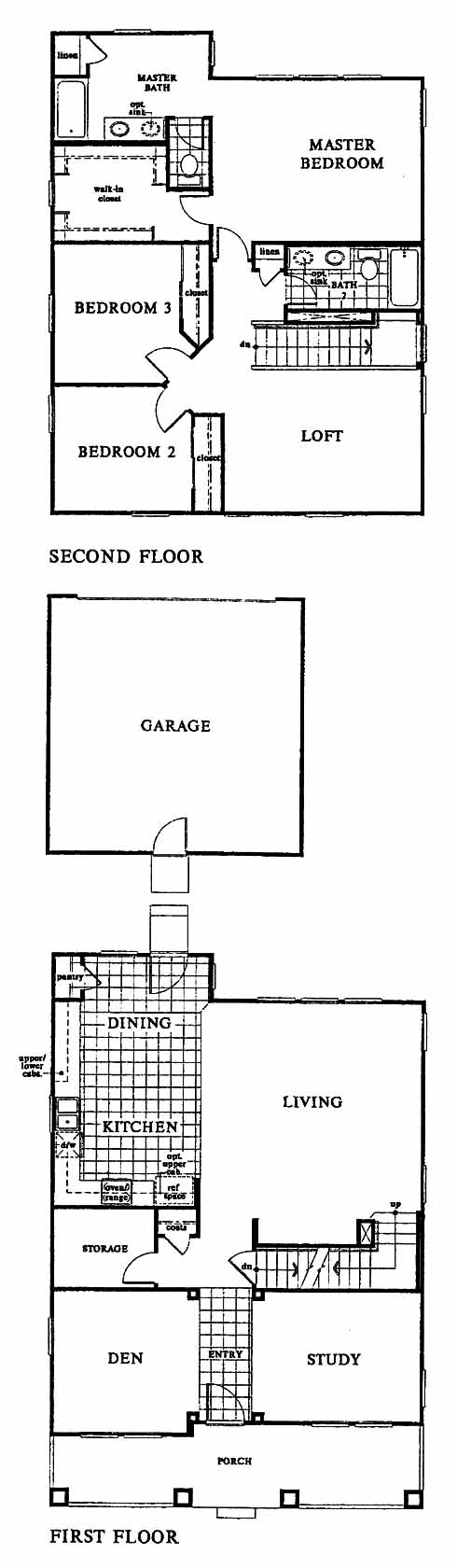 The tiled entry flanked by the den and study takes you into the spacious living room. Open to the living room is the tiled kitchen with dining area and pantry. Upstairs you'll find the 2nd and 3rd bedrooms, loft area and the massive master bedroom with walk-in closet and master bath with optional dual vanities.