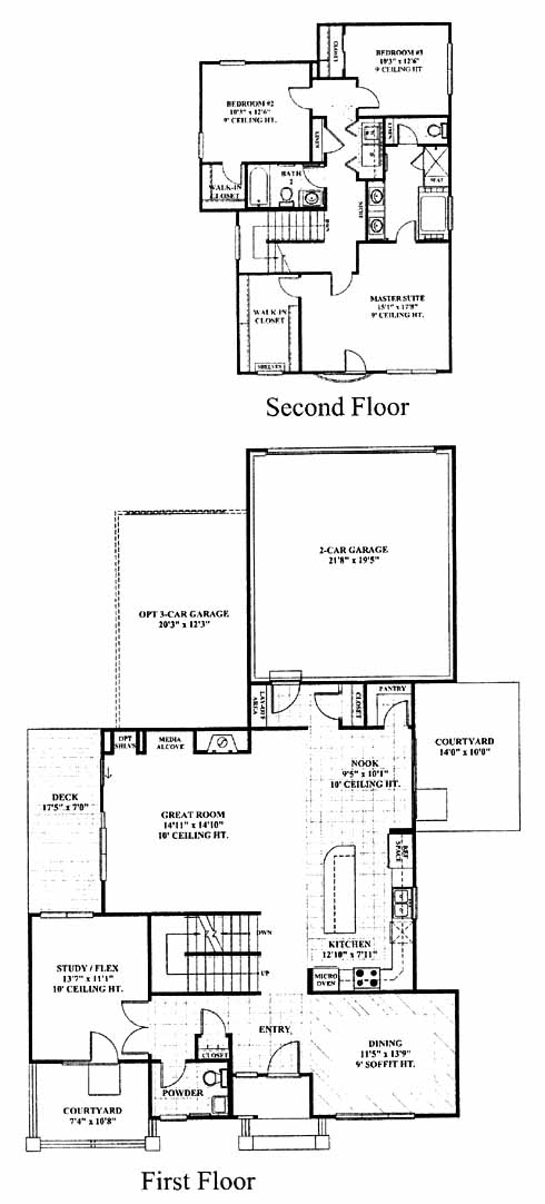 The tiled entry flanked by the dining room and study takes you into the large great room with fireplace and media alcove. From the great room you can access the spacious deck and the tiled kitchen with island, pantry and breakfast nook. Upstairs you'll find the 2nd and 3rd bedrooms, hall bath and the spectacular master suite and bath with walk-in closet and dual vanities.