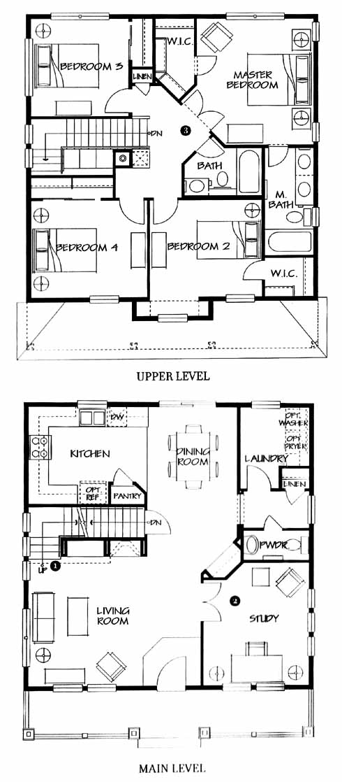 The large living room greets you as soon as you enter the home. From the living room you can access the study, powder room, dining room and the kitchen with wrap around counter and pantry. The second floor features the 2nd, 3rd and 4th bedrooms, hall bath and master bedroom and bath with dual vanities.