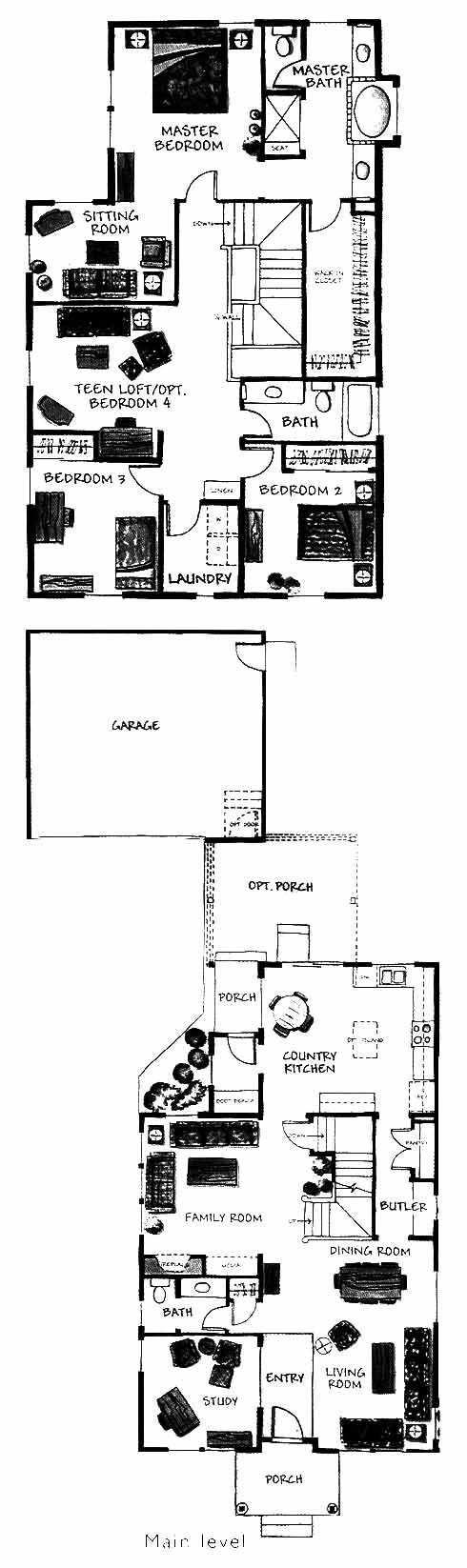 The entry flanked by the living room and study takes you into the family room with fireplace and media niche. From the family room you can access the kitchen with optional island, wrap around counter and porch. On the second floor you'll find the 2nd and 3rd bedrooms, loft area and the impressive master bedroom with sitting room and master bath with dual vanities and a walk-in closet.