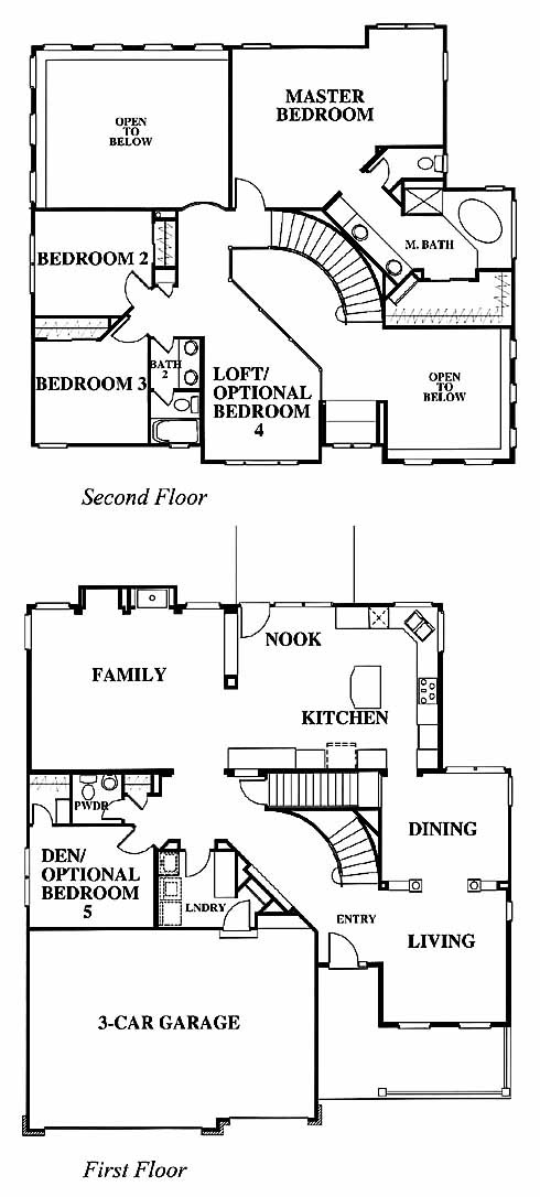 The entry takes you into the living and dining room area of this beautiful home. Next you'll come to the kitchen with island and breakfast nook. From the kitchen you can access the family room with fireplace and den/optional 5th bedroom. Upstairs you have the 2nd and 3rd bedrooms, loft area, hall bath and the impressive master bedroom and bath with dual vanities and a walk-in closet.