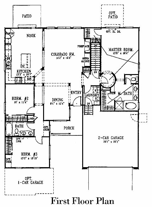The dining room greets you on your left as you enter the home just before you come to the Colorado room. Open to the Colorado room is the kitchen with island, pantry and breakfast nook. Also accessible from the Colorado room are the 2nd and 3rd bedrooms, hall bath and the impressive master bedroom and bath with dual vanities.