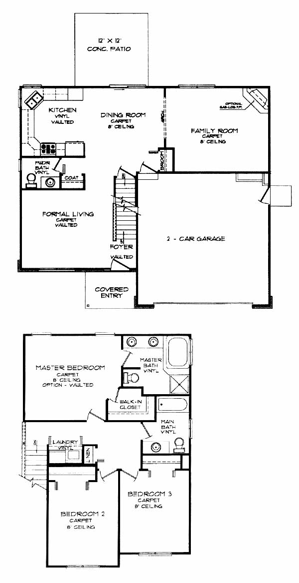 This two story features a formal living room and a dining area between the open kitchen and family room. There is also a half bath and access to the 12' by 12' rear patio. The upper level features a master suite with five piece bath and walk-in closet, two more bedrooms a full bath and laundry off of the hall. The two car garage and 794 square foot unfinished basement are included in the price. A three car garage is optional.
