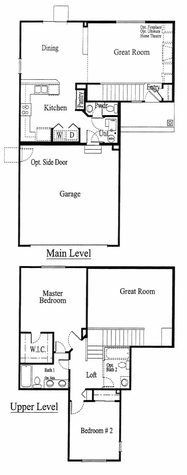 A two-story home offered at a great price. The main level has a great room with volume ceilings, dining area, large kitchen and a half bath. Upper level has two bedrooms and a full bath plus options for another bedroom and bath. Included in the price are a 2-car garage and 700 square feet of unfinished basement.