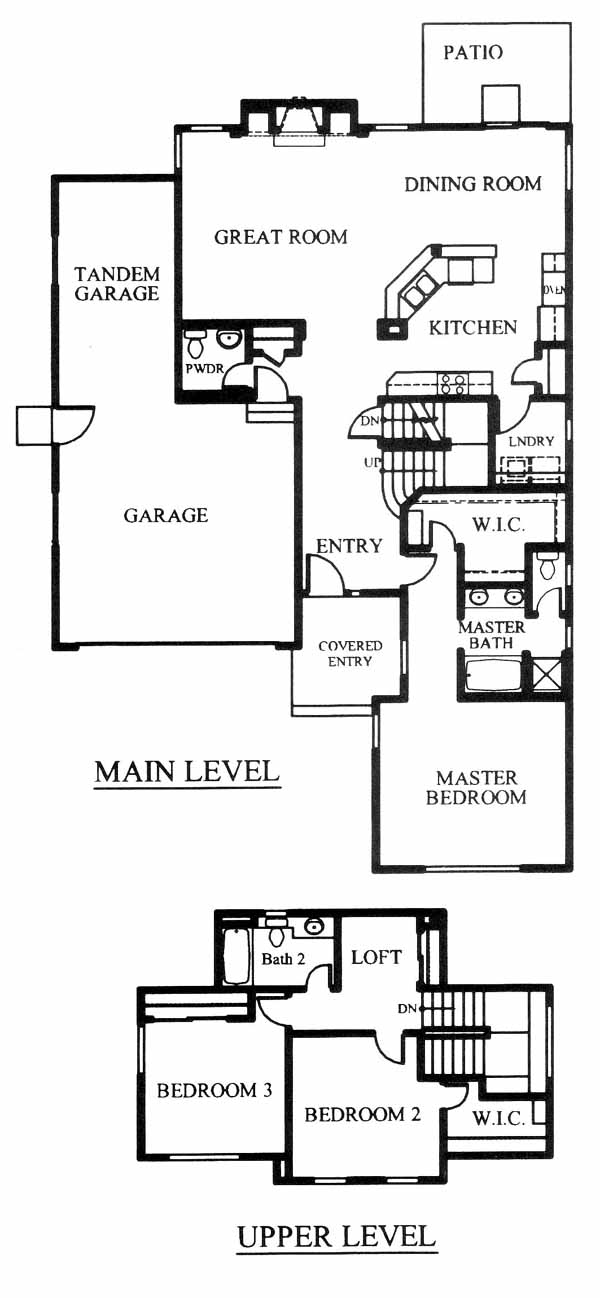 A family home featuring an open concept great room with fireplace to be enjoyed from the kitchen and dining area. There is a half bath and separate laundry plus a nice master bedroom with 5 piece bath all on the main level. This plan offers a 3-car tandem garage or an optional 4th bedroom. Upstairs are two more bedrooms, full bath and study area. An unfinished basement of 1000 square feet is included.