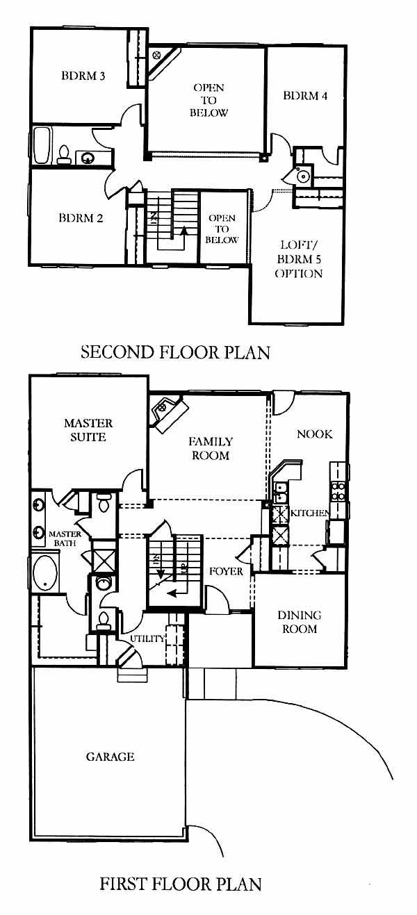 Two-story home with fifth bedroom loft option. Main floor master w/walk-in closet and deluxe bath. Family room with two story ceiling. Formal dining room and large kitchen w/nook. Exceptional elevation w/front swing entry and a two car garage.