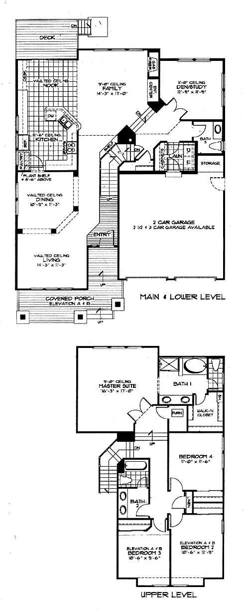 A multilevel home with a unique floor plan. The main level offers formal living and dining rooms with vaulted ceilings, a family room and kitchen with a nook. A couple of steps down from the family room you will find a study, half bath, laundry room and the entrance to a partial basement. The upper level has three bedrooms and full bath off the hall then take a couple of steps up to the separate master suite that has a five piece bath with walk-in closet and features nine foot ceilings. A two car garage is standard.