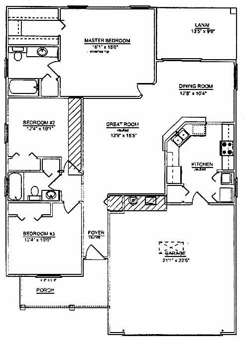 This home includes a large great room that is nice for entertaining purposes. The nearby dining room has access to the lanai while leading to the kitchen with pantry and wrap-around counter. The master bedroom includes a walk-in closet and master bath. Two more bedrooms share a bath between them.
