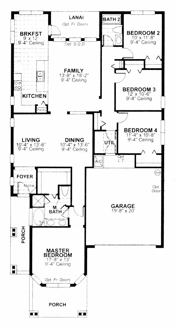 The tiled foyer leads you immediately into the living and dining room area. This access's the master bedroom and tiled master bath with dual vanities. Next is the kitchen with wrap around counter and breakfast nook, which opens to the family room with optional sliding glass doors to the lanai. Last but not least are the 2nd, 3rd and 4th bedrooms with hall bath and the utility room.