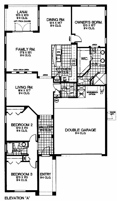 This home has living and family rooms separated by a wall with high arch openings. The kitchen with pantry opens into the dining room at the back. The owner's bedroom includes a walk-in closet and master bath with double vanity. Two bedrooms at the front share a bath between them. Plenty of upgrades are available.