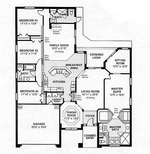 Spacious family home with luxury master suite with contour tub and separate shower and sitting room with access to the covered lanai. The third bathroom can double as pool bath. Large kitchen with separate breakfast area. Third car garage optional.