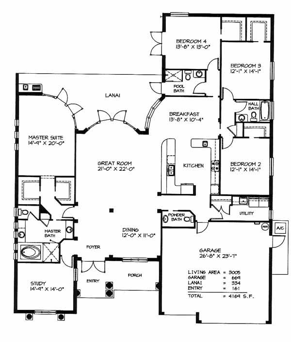 Entering through the front door, you will see the large Great Room which is the centerpiece of the home. To the right is the spacious kitchen and breakfast area that overlooks the lanai. Walk-in closets in every bedroom, including two in the master bedroom. Two sink areas, separate tub and shower are just some of the features in the master bath. Large study at the front of the home makes a great home office.