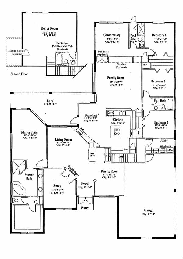 This home has large rooms including a spacious master suite with luxurious bath. Double vanity, large shower and separate tub. Study makes a great home library. Gourmet kitchen overlooks family room with optional fireplace. Three large bedrooms and conservatory round out the main floor. Bonus room upstairs has multi-function options.