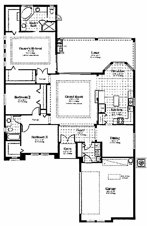 This home has a formal dining room to one side of the foyer entrance. The nearby kitchen includes a pantry and island workspace for preparing meals while opening into the breakfast room. The grand room with lanai access is perfect for entertaining guests. The owner's retreat has private lanai access, his and her walk-in closets and a master bath with dual vanities. Two more bedrooms share a bath.