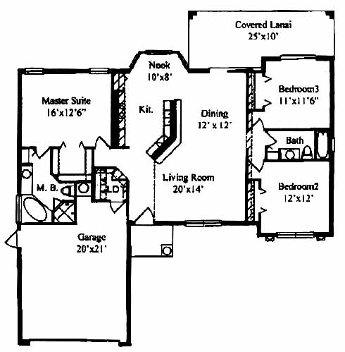 This home has a living room to one side of the foyer entrance that is perfect for entertaining guests. The dining room at the back overlooks the living room and has access to the covered lanai as well. The nook with bay window leads to the kitchen that includes a pantry and ample counterspace for preparing meals. The master suite has a walk-in closet and private bath with tub and separate shower. Two more bedrooms on the opposite side of the home share a bath. Price does not include a homesite.