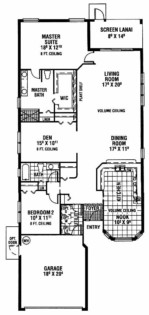 This villa home has a nook and kitchen with eat-in area to one side of the foyer entrance. The dining room overlooks the spacious living room with lanai access. The den makes a great office or computer room. The master suite includes a walk-in closet and private bath. A second bedroom is located at the front of the home.