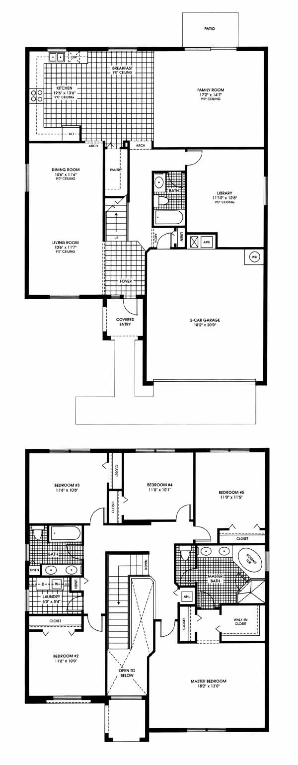 Two story, 5 bedrooms, 3 baths home and library with a 2 car garage