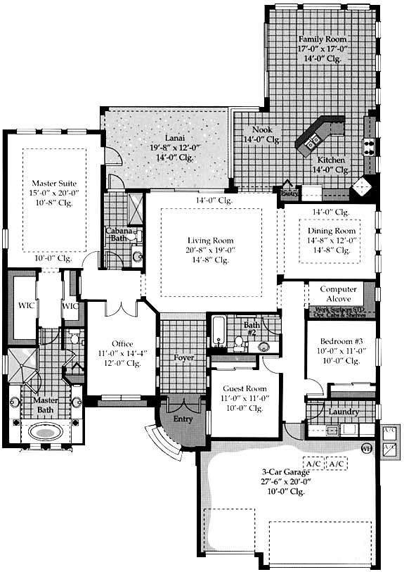 One story residence, three bedrooms plus den, three baths, family room, computer alcove, three car garage.