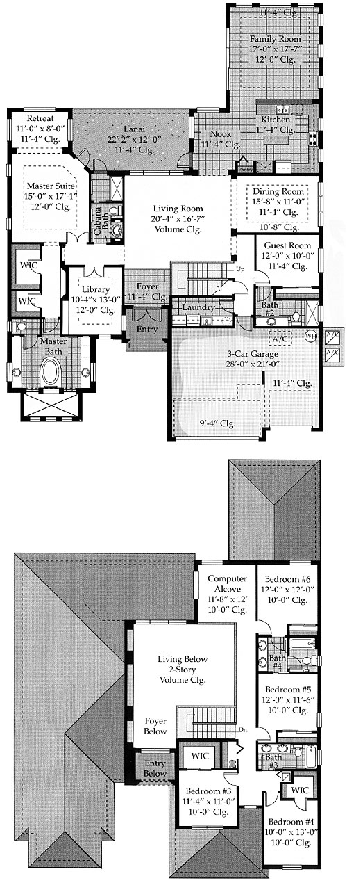 Two story residence with six bedrooms plus a library, five baths, family room, computer alcove, retreat, and a three car garage.