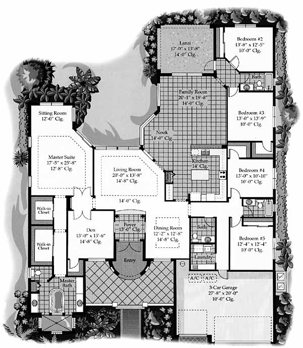 One story residence, five bedrooms plus a den, three and a half baths, family room, and a three car garage.