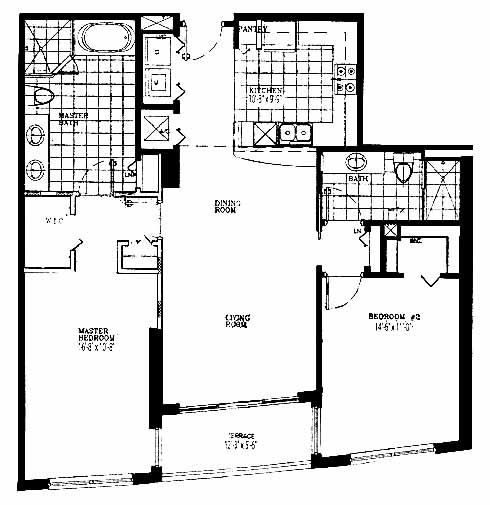 This condominium home has a laundry area to one side of the entrance with the kitchen that includes a pantry and ample counter space to the other side. Relax in the living room after a nice dinner served in the dining room. The master bedroom includes a master bath with double vanity, tub and separate shower. The second bedroom includes a walk-in closet and a bath nearby. Access the terrace from the living room.