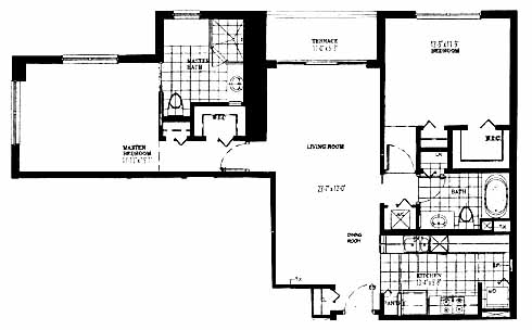 This condominium home has a kitchen to one side of the foyer entrance that includes a pantry and ample counter space for preparing meals. The dining room leads to the living room with terrace access. The master bedroom includes a walk-in closet and master bath with tub and separate shower. The second bedroom has a walk-in closet.