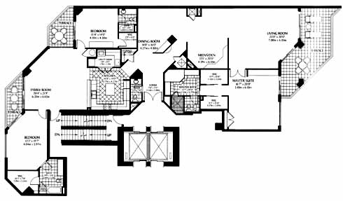 This condominium home has a kitchen to one side of the foyer entrance that includes an island workspace for preparing meals. Serve meals in the dining room before retiring to the living room for more intimate conversation with friends. The den makes a nice space for a home office. The family room near the kitchen will be a popular spot during family get-togethers. The master suite includes his and her walk-in closets, private access to the terrace, and a master bath with garden tub and separate shower. Two more bedrooms provide ample privacy and space with their own baths and walk-in closets, not to mention access to terraces.