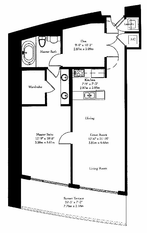 This condominium home includes a den to one side of the foyer entrance that makes a nice office. The kitchen has ample counterspace and overlooks the dining and living rooms where you can entertain guests comfortably for hours. Access the sunset terrace from the living room and the master suite that also includes a walk-in wardrobe closet and master bath.