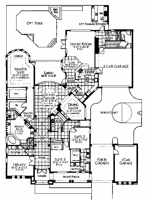 This home has a library to one side of the foyer entrance that makes a nice home office. The gallery leads to the grand parlor with views of the lanai. The kitchen includes ample counterspace for preparing food while the cafe and dining room are nice options when serving meals. Relax on the weekend in the leisure room that opens out to the optional pool. The master suite includes a lounge area, his and her walk-in closets and a luxurious master bath with garden tub and separate shower. Two more suites have walk-in closets while sharing a Jack-n-Jill bath. The second floor oasis room is perfect for use as a fitness area or game room.