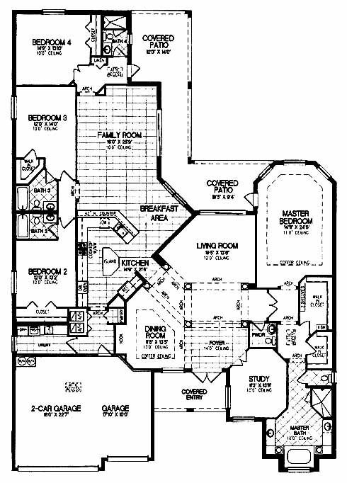 Description of Home: This home has a formal dining room and study on either side of the foyer entrance before leading to the living room with access to the covered patio. The kitchen includes a pantry and island workspace for preparing meals while overlooking the breakfast area. The family room in the back is perfect for entertaining guests and has access to the patio as well. Two bedrooms have private baths and ample closet space, while a third bedroom has close access to a bath. The master bedroom includes private access to the patio, his and her walk-in closets and a luxurious master bath with garden tub and separate shower.