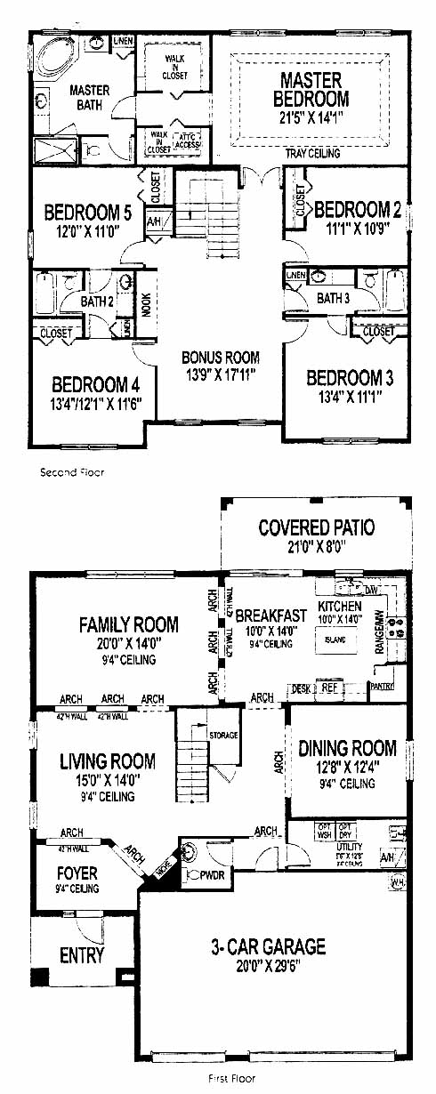 This home has a spacious living room at the foyer entrance that passes through an arched entry into the family room where entertaining guests will be enjoyable. The breakfast area with access to the covered patio opens into the kitchen with island workspace, desk area and a walk-in pantry. The formal dining room is a nice spot for large family dinners. The second-floor master suite includes his and her walk-in closets and a master bath with garden tub and separate shower. Two more bedrooms on each side of the second floor share baths between them. The bonus room is a nice area to set up a small home office or study area for the kids.