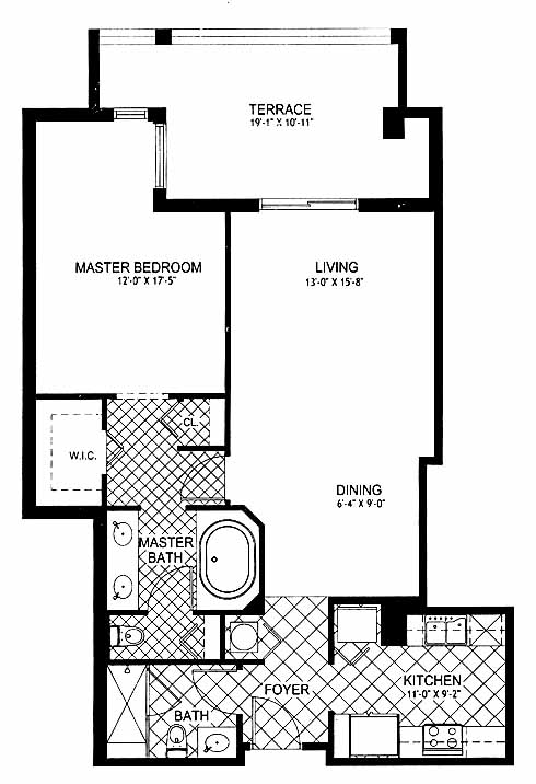 This condominium home has a dining room to one side of the foyer entrance that leads to the kitchen with ample counterspace. The living room includes access to the terrace. The optional den makes for a nice home office. The master bedroom includes his and her walk-in closets, a dressing area and a master bath with double vanity. A second bedroom is located at the opposite side of the condo.