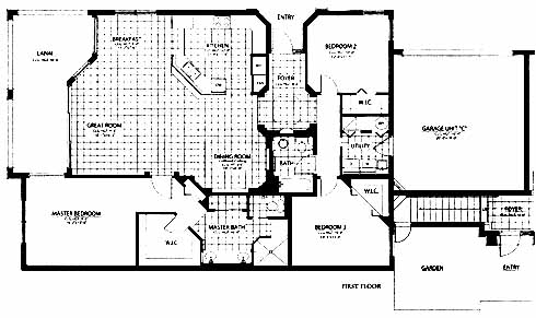 This condominium home features a spacious kitchen with ample counter space and pantry to one side of the foyer entrance. Breakfast and dining rooms are nice options when serving meals. Entertain guests in the great room that includes access to the lanai. The master bedroom includes a walk-in closet, private access to the lanai and a master bath with double vanity. Two more bedrooms have walk-in closets and share a bath.