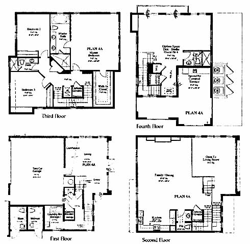 This townhome has a large family/dining area on the second floor that overlooks the living room on the first floor. The kitchen includes an island workspace for preparing meals. The third floor has three bedrooms including the master bedroom with oversized walk-in closet and master bath with double vanity. The fourth-floor studio makes a nice fitness area or game room. The covered terrace with optional bar is a nice spot to relax and watch the sunset.