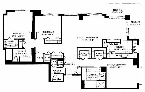 This condominium home has a spacious master bedroom to one side of the foyer entrance that includes his and her walk-in closets and a master bath with double vanity, tub and separate shower. Two more bedrooms on the opposite side of the condo have ample closetspace and share a nicely sized bath. The large living/dining room area is perfect for entertaining guests and includes access to the terrace and kitchen with pantry and countertop eat-in area.