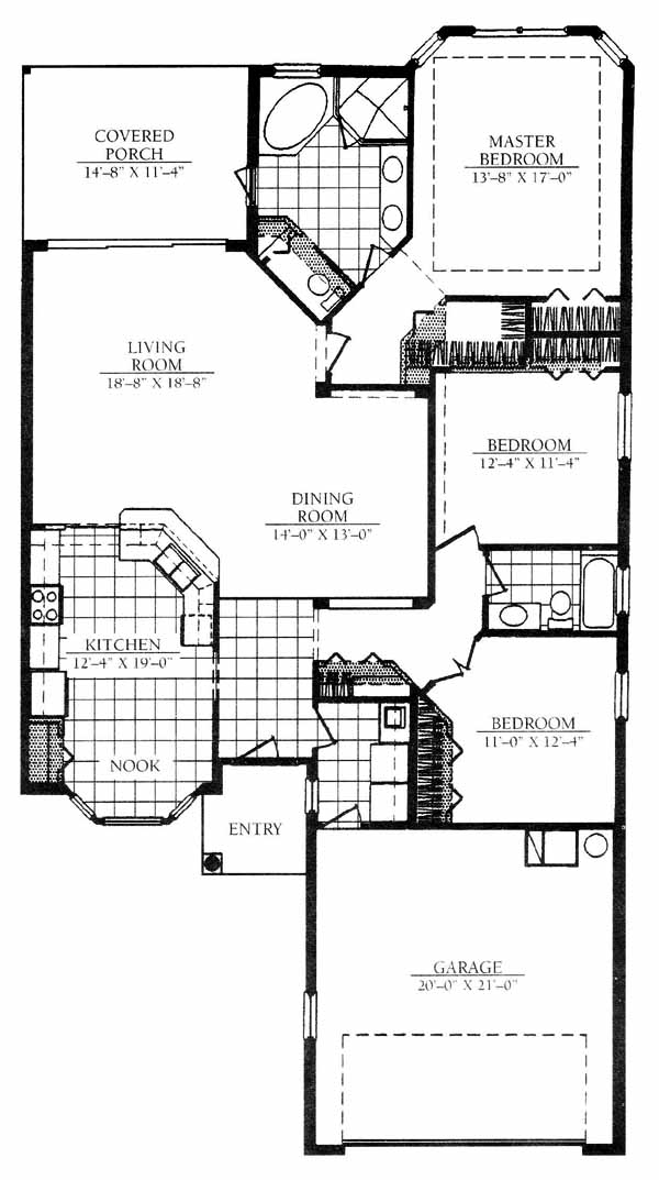 The tiled entry leads you past the 2nd and 3rd bedrooms and hall bath and into the living and dining room area. Open to the living room is the kitchen with pantry and breakfast nook. From the living room you can access the covered porch and the impressive master bedroom with his and hers walk-in closets and the tiled master bath with tub, shower and dual vanities.