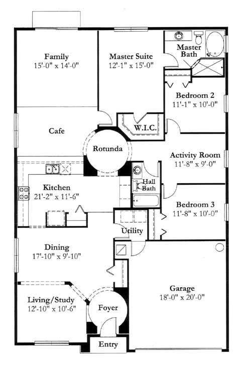 The gorgeous foyer takes you past the study and into the spacious dining room area. From the dining room you can access the kitchen with cafe area which leads through the rotunda to the 2nd and 3rd bedrooms, activity room, family room and the master suite and bath with a walk-in closet.