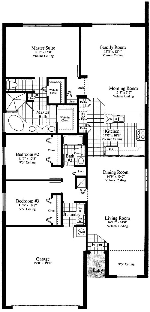 The tiled foyer takes you directly into the living and dining room areas of this beautiful home. Immediately to your left you can access the 2nd and 3rd bedrooms and hall bath. Next you'll come to the tiled kitchen with pantry just before you enter the family room and morning room. From the family room you can access the master suite and bath with walk-in closet and dual vanities.